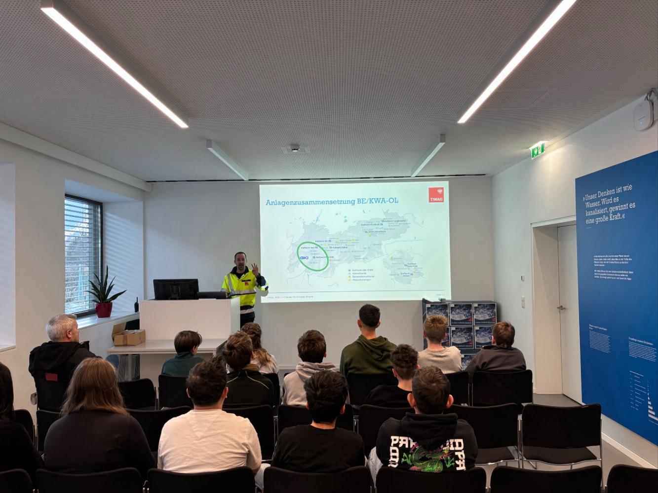 Am Vormittag stand der Besuch der TIWAG – Tiroler Wasserkraft AG im Mittelpunkt. In vier abwechslungsreichen Stationen erhielten die Schülerinnen und Schüler spannende Einblicke in die Welt der Wasserkraft und der Energiegewinnung im Tiroler Oberland.
