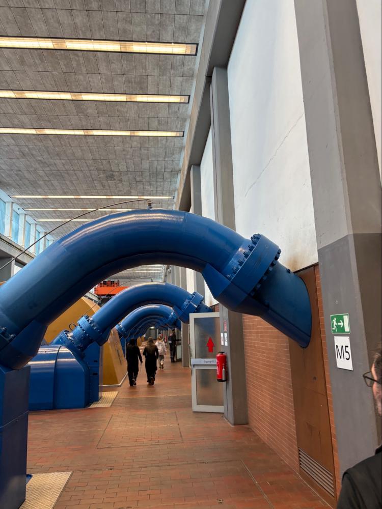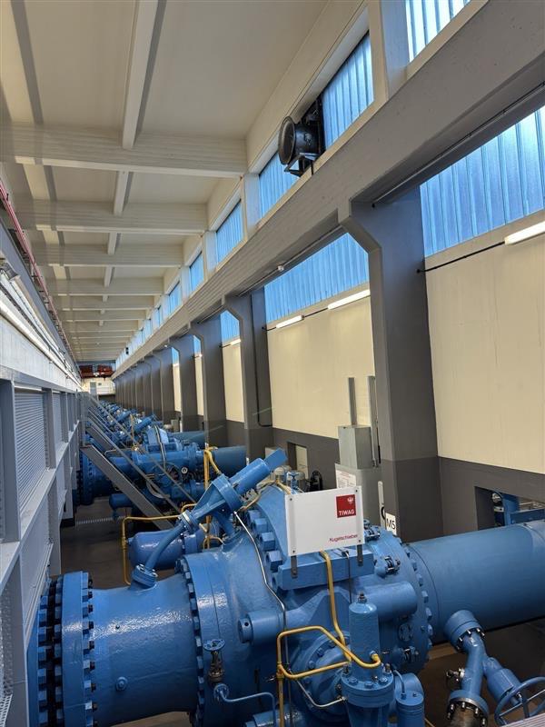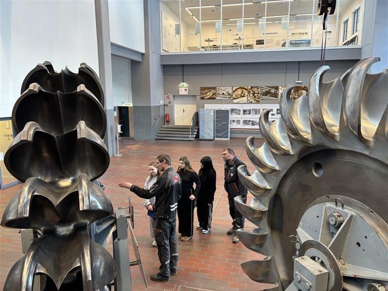 In der Maschinenhalle konnten große Bauteile wie Turbinenlaufräder, Kugelschieber und hydraulische Systeme aus nächster Nähe betrachtet und funktional verstanden werden.